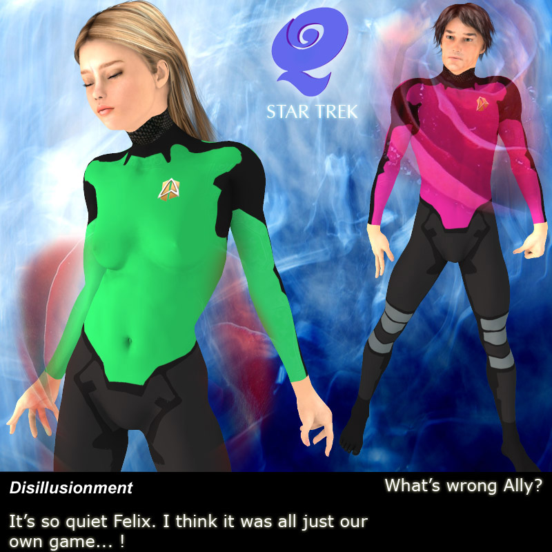 LATEST NEWS The Pilot script is complete plus three more. Our little studio is ready to go the next step. We are now looking for funding to put togetherr a 30 minute teaser video to show Star Trek Q to Paramount/CBS. If this money comes from Parmount or somebody else is still up in the air. However, as we wait, we are continuously making progress in other areas of the series.